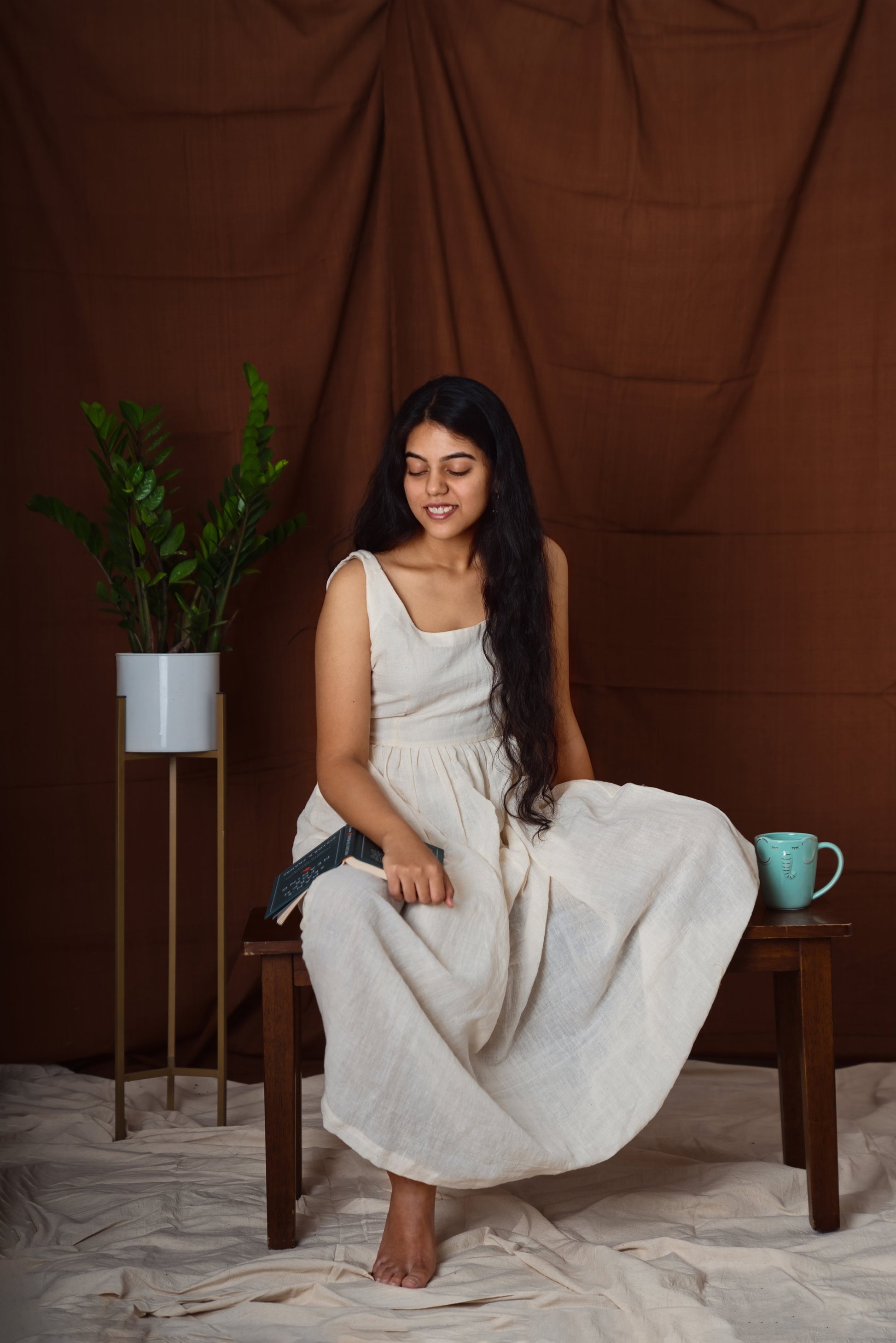 A dress that can be styled with anything everything. That makes you feel like you are wearing a cool breeze, Good with sun. Can be styled in Infinite ways. It's like a white canvas. What are you waiting for?